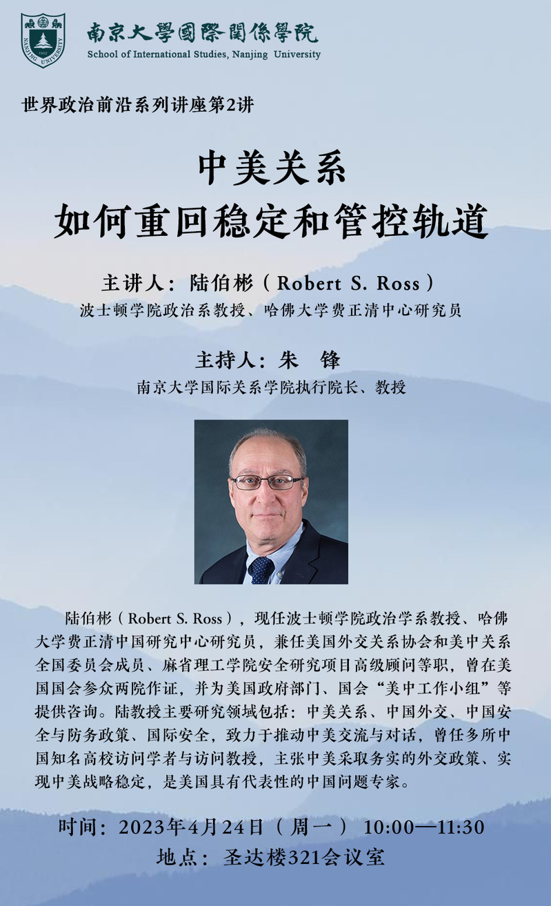 【讲座预告】陆伯彬(Robert S. Ross):中美关系如何重回稳定和管控轨道