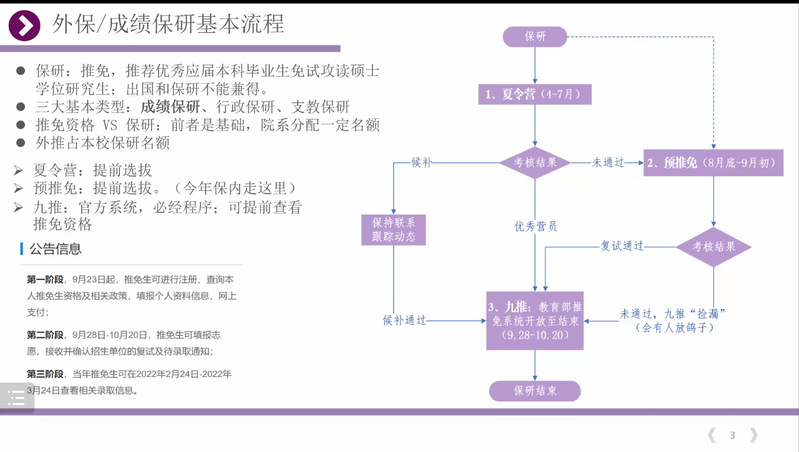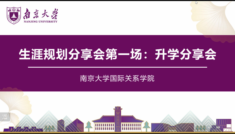邱奕暄同学介绍了申请到北京大学攻读研究生的经历。奕暄同学从个人基本情况、外保/成绩保研基本流程、国政/国关可以考虑的意向院校及项目,参与北京大学燕京学堂和人大国关保研过程进行了细致的分享。奕暄同学认为专业能力是核心,需要珍惜核心课和所有的训练机会,把眼下的事情做好,沉住气。要注重提高英语能力,丰富课外经历,合理利用大二暑假、大三寒假,注意课程和课外活动的平衡,经历上最好不要有明显的空白或短板。在面试过程中,充分展现所受过的规范训练,尤其是引用等细节。最后,她认为同学们应享受准备保研的过程,每一次的面试都是宝贵的历练。鼓励大三的同学以尽人事的态度,坦然面对保研,祝愿大家心想事成。