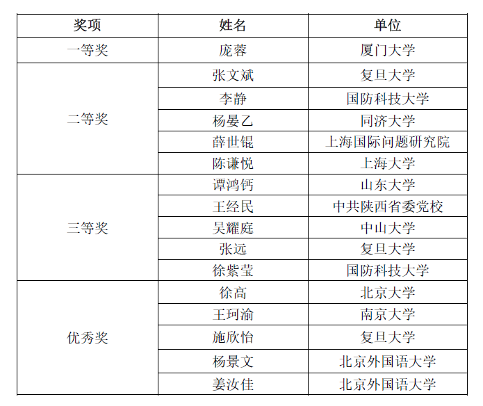 附:第一届“长三角研究生区域国别学学术创新论坛”获奖名单