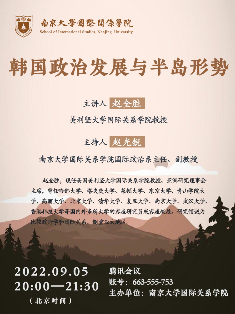 【讲座预告】赵全胜:韩国政治发展与半岛形势
